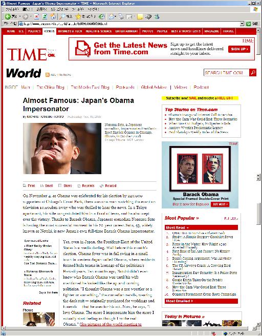 Web版Time(Almost Famous: Japan's Obama Impersonator )はこちら